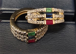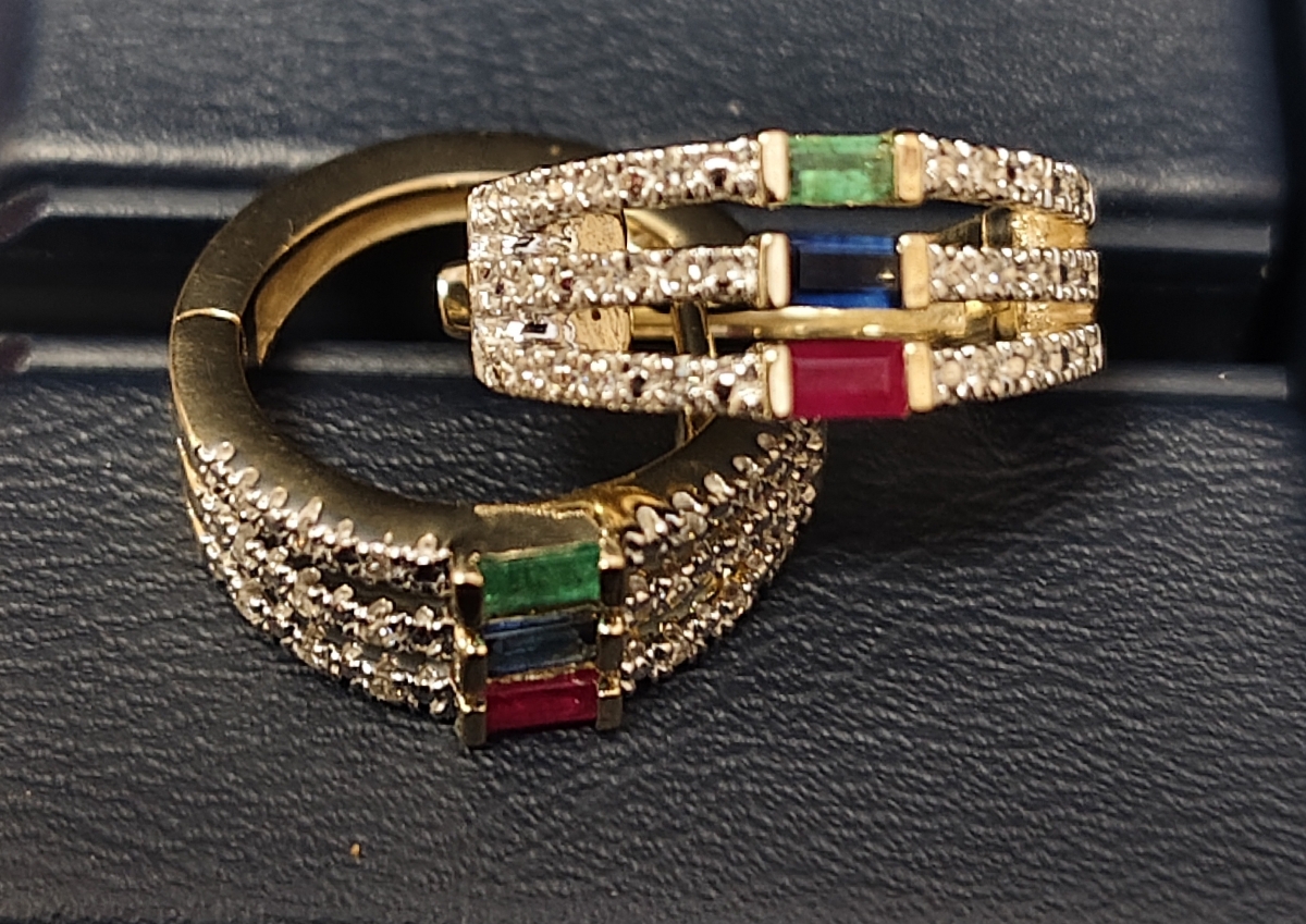 Ohrringe Gold 585 / Smaragd, Saphire, Rubin / Brill. 0,1 ct.