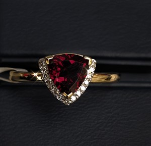 Ring Gold 585 / Granat, Brill. 0,06 ct. / Gr. 56