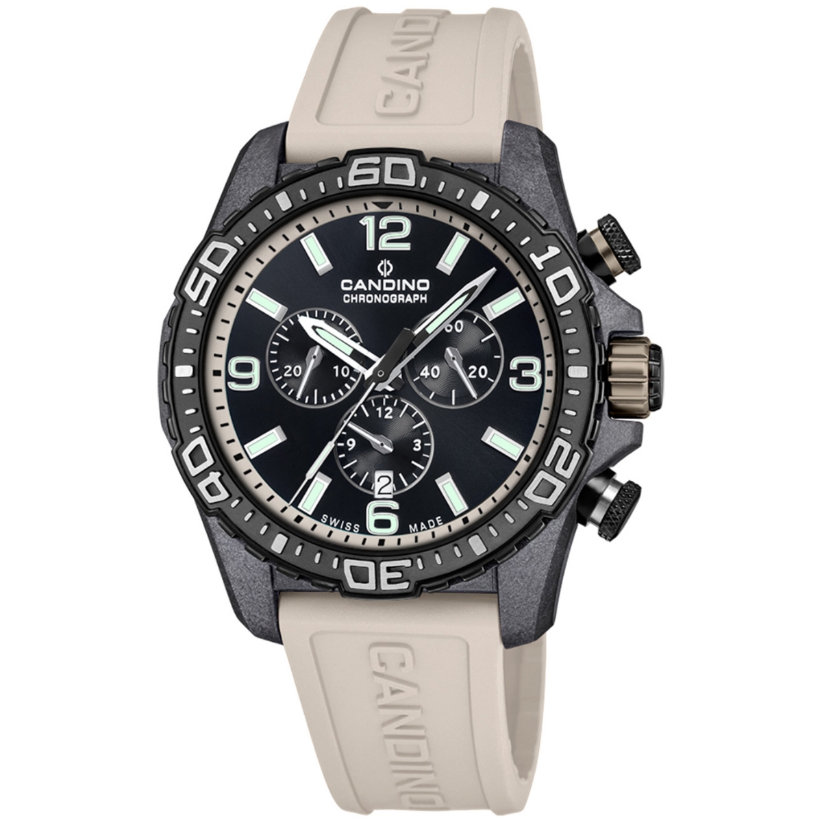 Candino CARBONE Hau SSK beige,schwarz index arab.Saphir 100m Artikelnr 124552